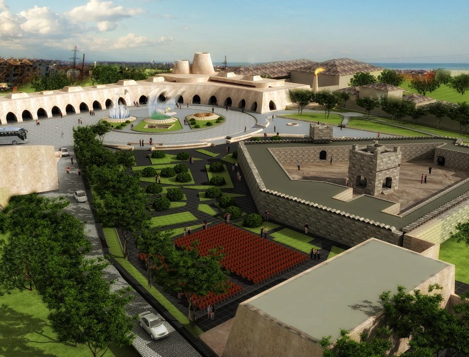 Çoxfunksiyalı tarix memarlıq kopleksində qədimlik saxlanılmışdır. Zərdüşlük sinvolu olan kopleksdə su, alov, torpaq və hava öz layihədə əksini tapır.