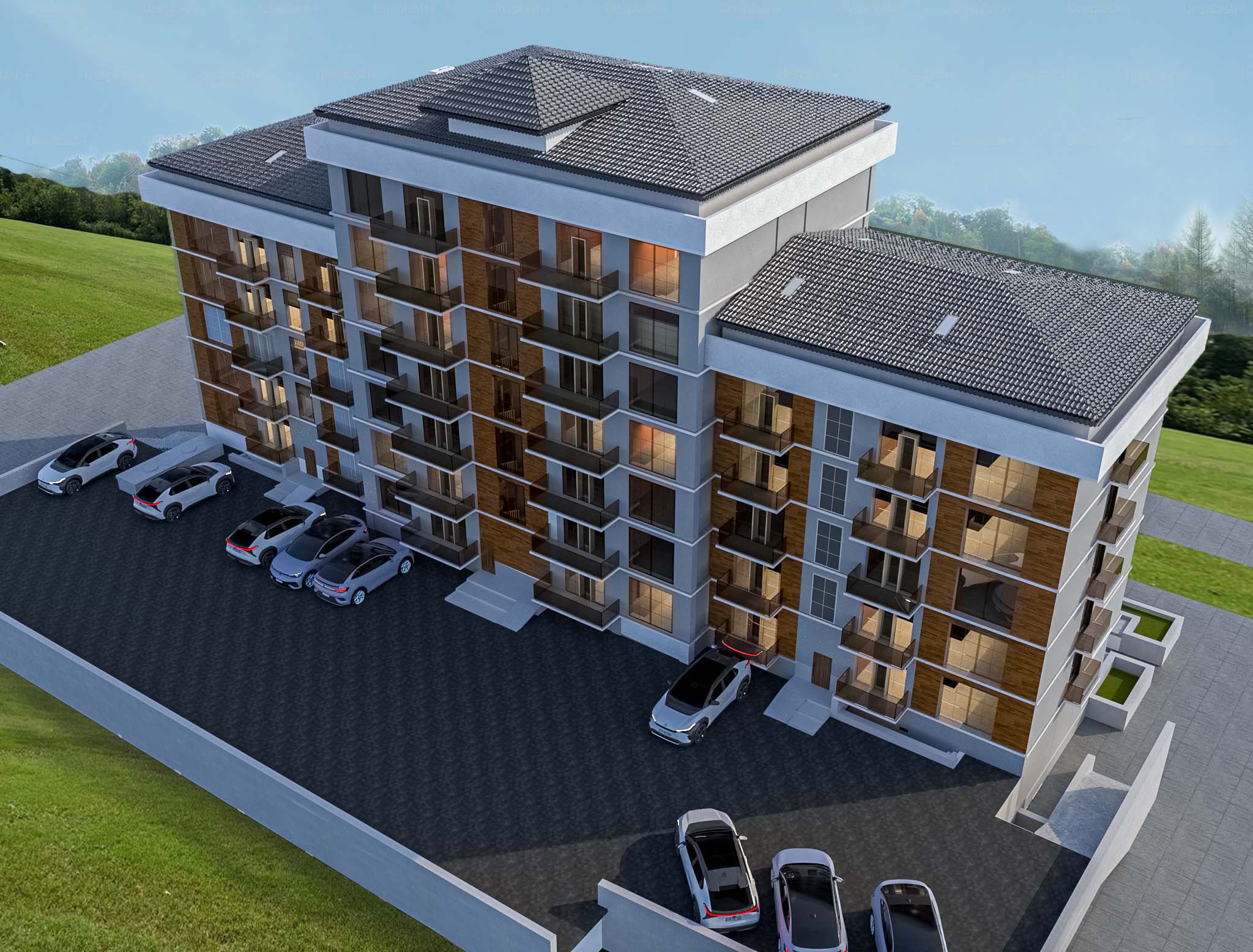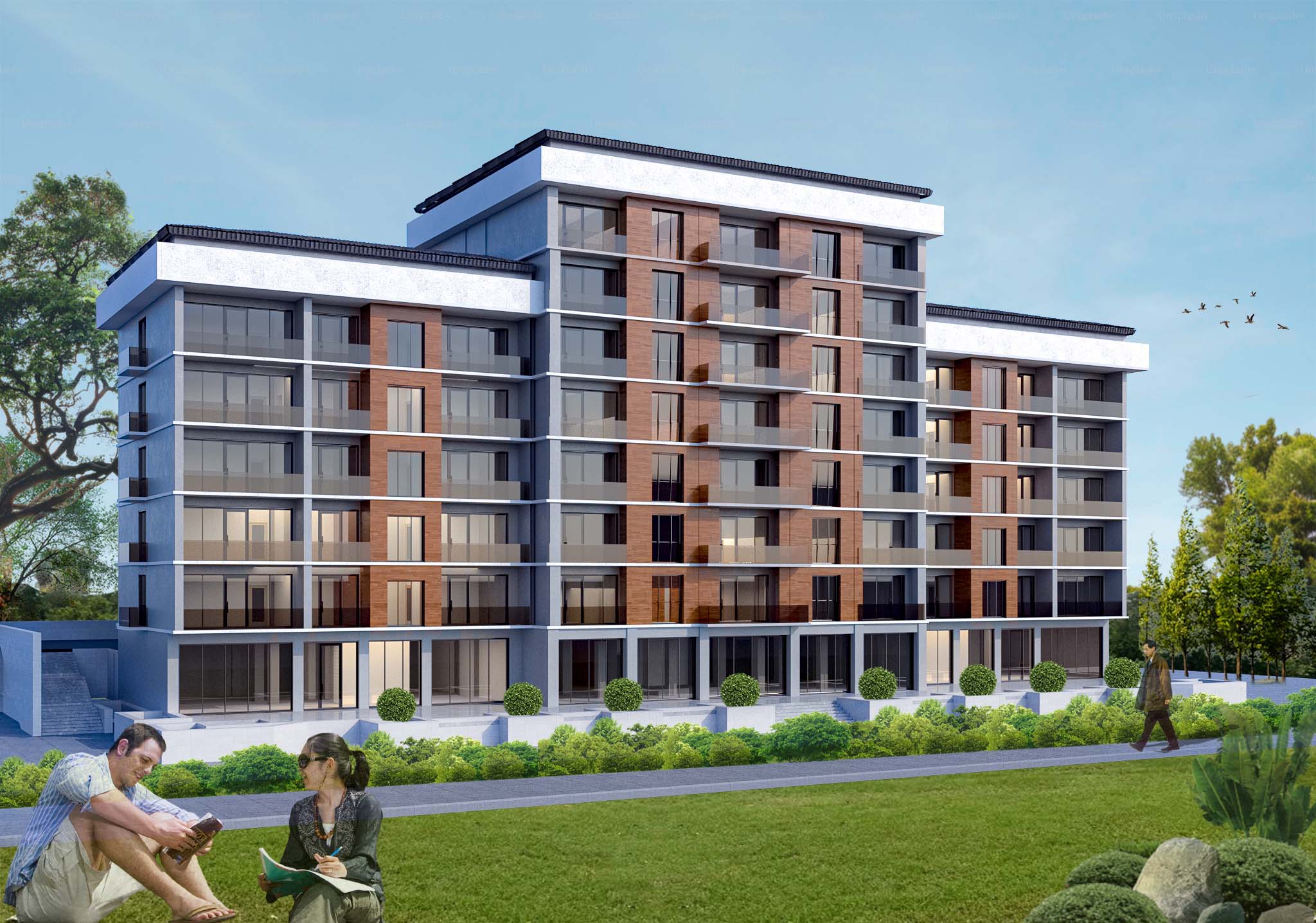 6143,9 m2 təşkil edir.Şəhərsalma əsaslandırılması işlənilən ərazinin relyefi ümumi mailli dəyişkən olub cənub qərbdən şimal şərqə doğru yönəlmişdir. Tikilməkdə olan yaşayış binasının mərtəbəlilik hündürlüyü ərazinin memarlıqkompozisiya, sosial-məişət, sanitar-gigiyena, demoqrafik tələblər, relyef və yerli şərait, tikinti bazasının və mühəndis avadanlığı səviyyəsinin xüsusiyyətləri nəzərə alınmaqla texniki-iqtisadi hesablamalar əsasında müəyyənləşdirilmişdir. Həmçinin 5-7 mərtəbəli yaşayış binası insalyasiyanı təmin edəcək şəkildə səmtləşdirilmişdir.