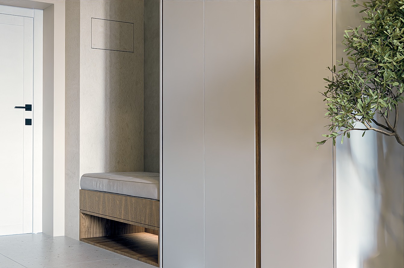 “Baku City Residences” yaşayış kompleksində mənzilin qonaq otağı və holu.